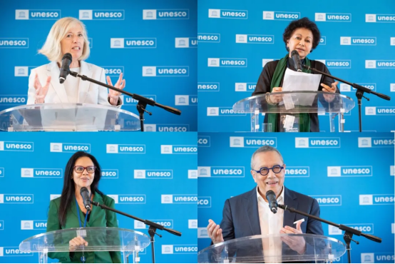 開幕式之后,網龍還與聯合國教科文組織共同舉辦了開幕酒會,UNESCO教育助理總干事Stefania Giannini(下圖左上),UNESCO IITE 理事會主席、北京師范大學智慧學習研究院講席教授Asha Kanwar(下圖右上),UNESCO教育技術與人工智能部門主任Shafika Isaacs(下圖左下),網龍副董事長梁念堅博士(下圖右下)等出席了酒會并致辭。Stefania Giannini女士對網龍的AI數字人技術表示認可,并邀請網龍利用AI生產中心的能力,為其制作本次學習周活動的致辭視頻。
